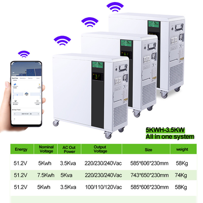 Sistema residencial 5KWH 7.5KWH todo do armazenamento de energia em um sistema de energia solar das baterias de lítio